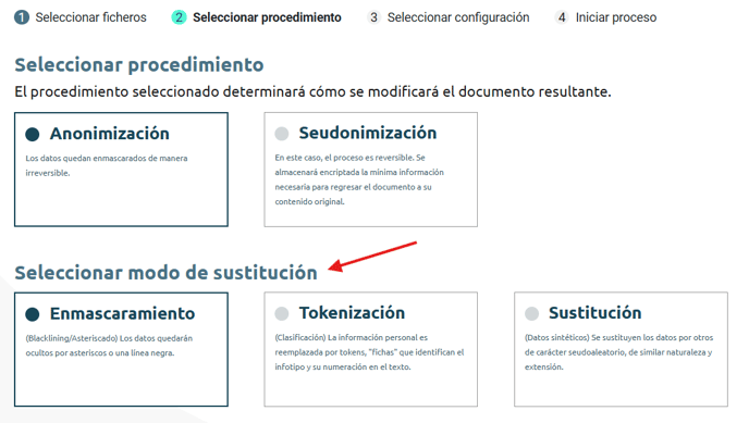 Enmascaramiento, tokenización o sustitución.